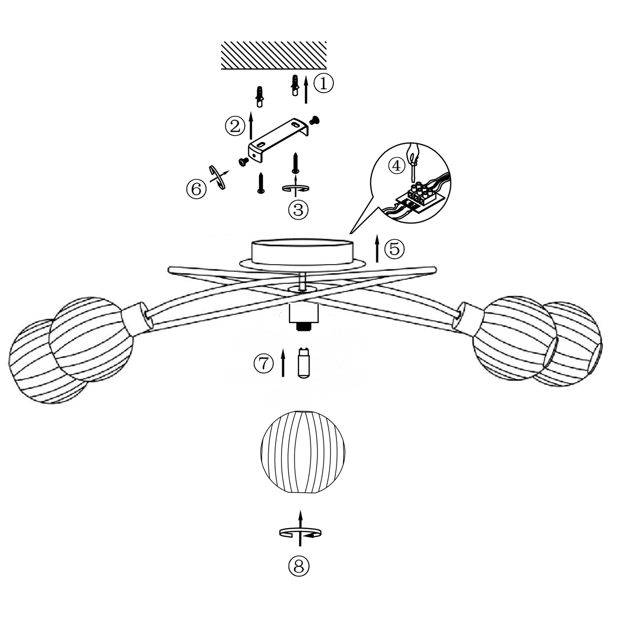 Lámpara/ semiplafón de 5 luces de la Colección ROLO en acabado cuero. Fabricado en metal con tulipa de cristal y detalle decorativo en el interior de un hilo metálico. Usa bombillas G9, 5 x G9 40W Max. (no incluidas), compatibles con bombillas LED.