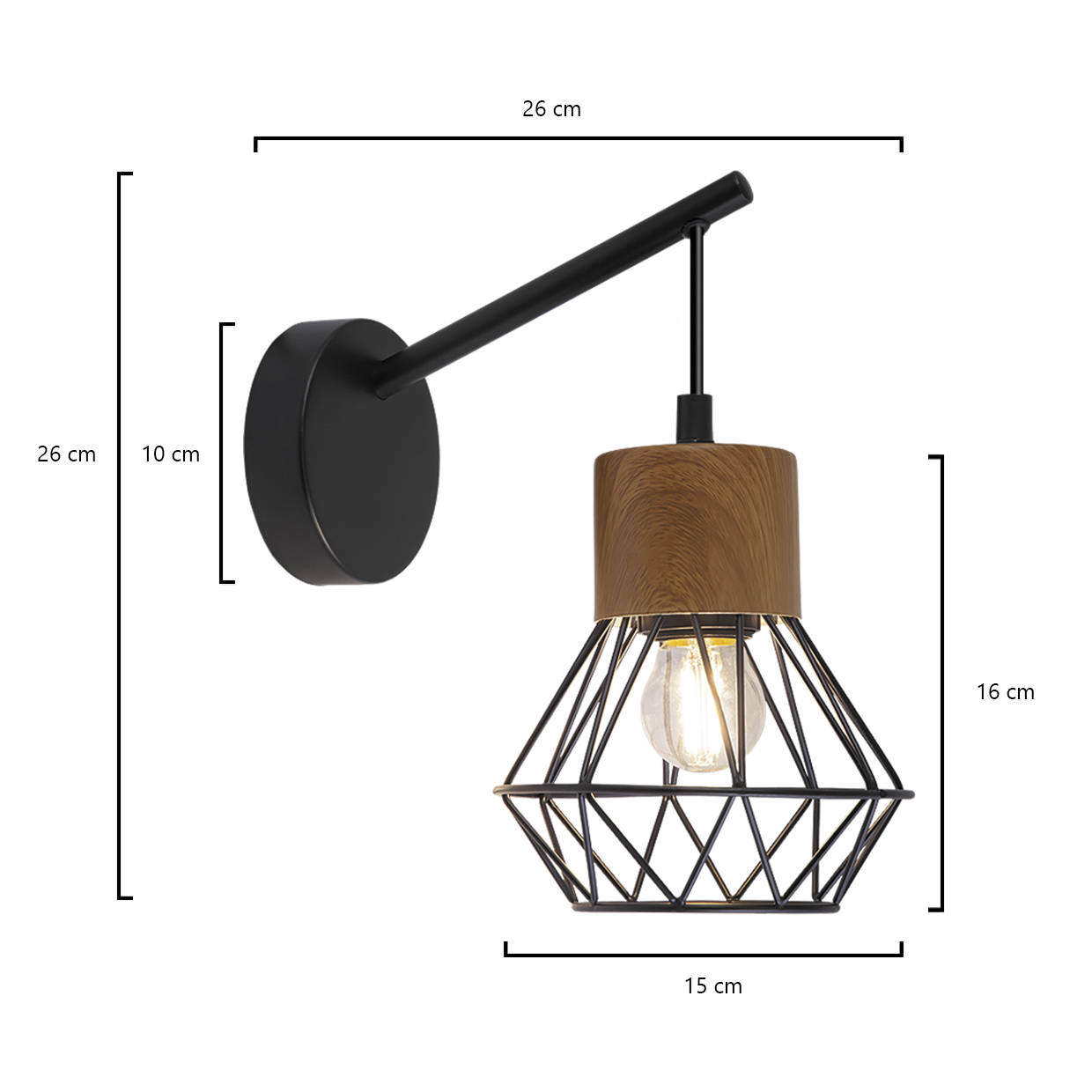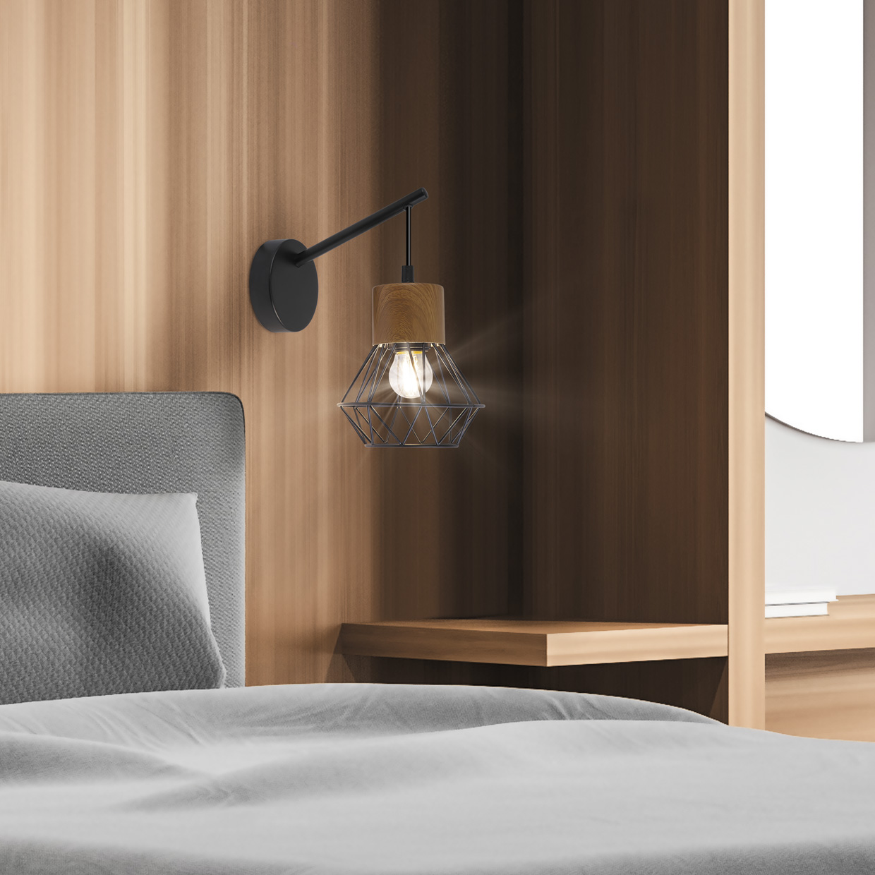 APLIQUE ANTIBES NEGRO Y MADERA 1 X 60W E-27