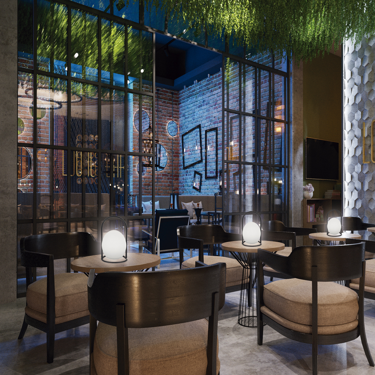 Lámpara portátil de sobremesa de la Colección Capriles (12W). Una original propuesta de estilo industrial con LED incorporado. Fabricada en acrílico blanco y estructura de metal negro. Dispone de mando a distancia que nos permite conseguir hasta 18 t