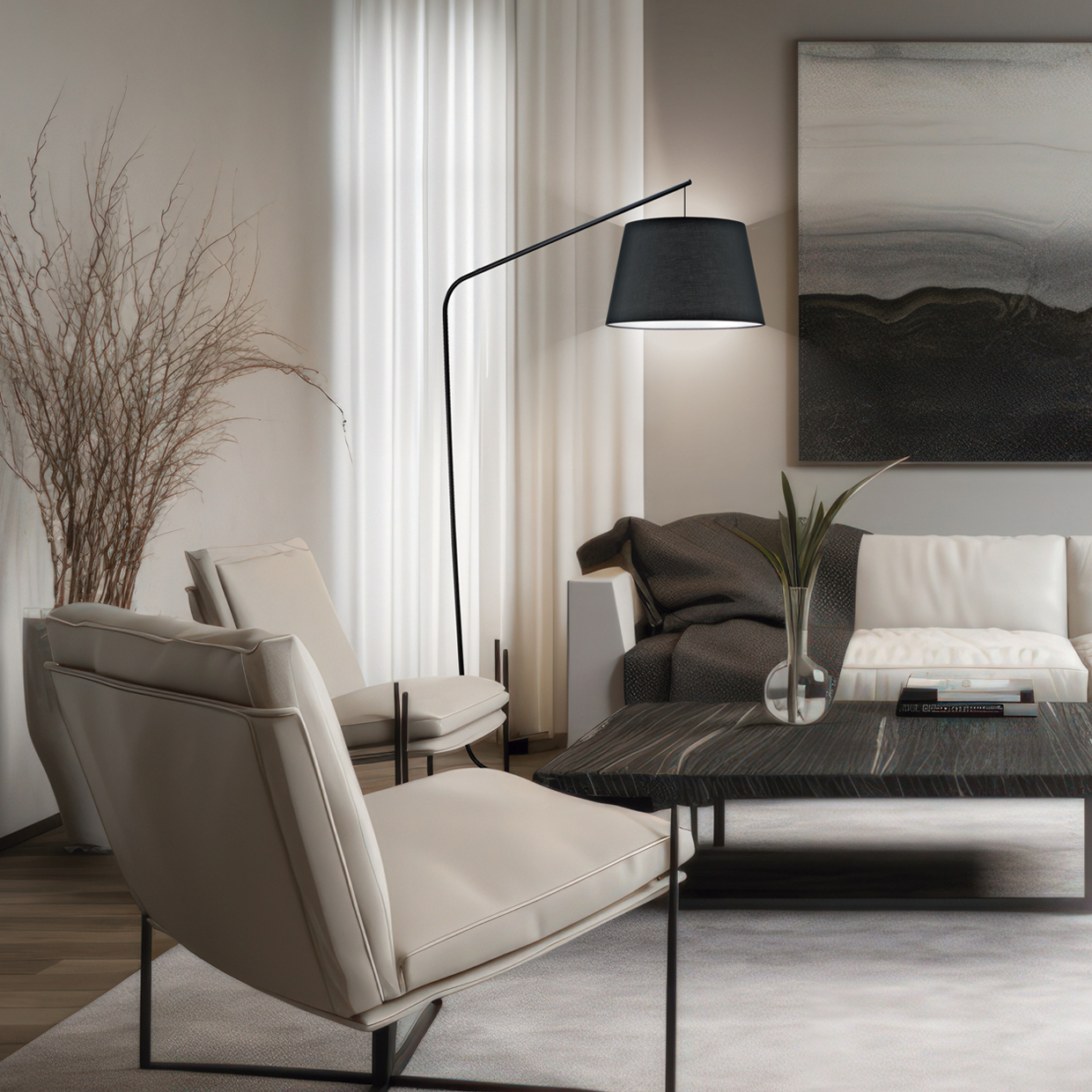 Pie de salón de la colección TALBOT. Fabricado en metal en acabado negro con pantalla de tela en acabado negro. Usa bombilla E-27 60w Max. (No incluida).