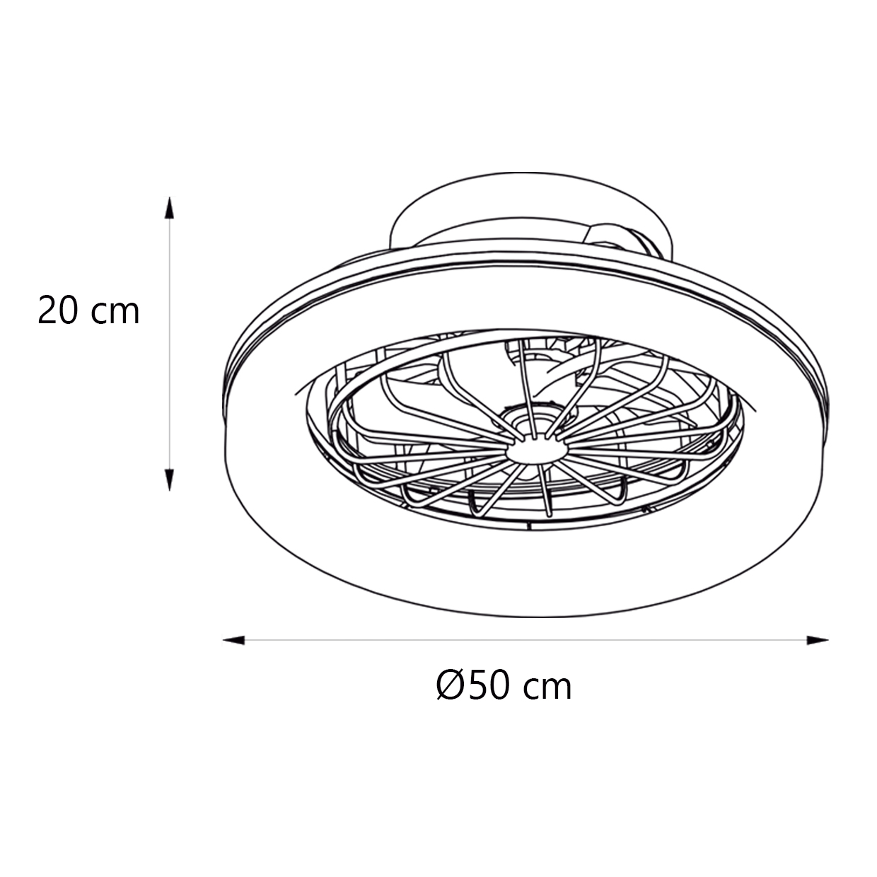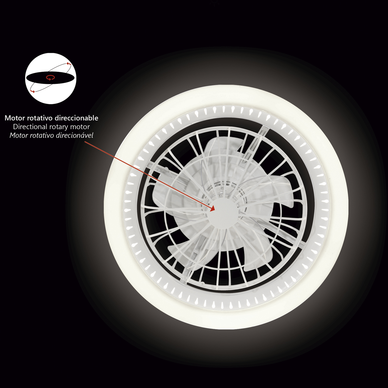 MOTOR DC 20WLUZ LED 40W 3000K,4000K,6500K5 PALAS ABSDIÁMETRO Ø50CMMANDO A DISTANCIA (pilas no incluidas)MOTOR ROTATIVO DIRECCIONABLEDIMABLE3 VELOCIDADESMODO INVIERNOMODO VERANOTEMPORIZADOR MEMORIA