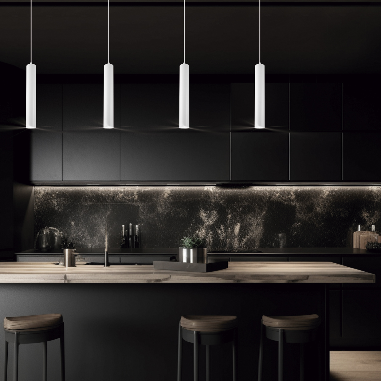 Lámpara colgante de la Colección Antia. Fabricado en metal en acabado blanco. Usa bombilla GU-10. 1 x GU10 10W Max., (No incluida).Cable negro PVC.Altura máxima: 120cm.Medida base techo: Ø8×2,5cmMedida tubo: Ø5,5x35cm.