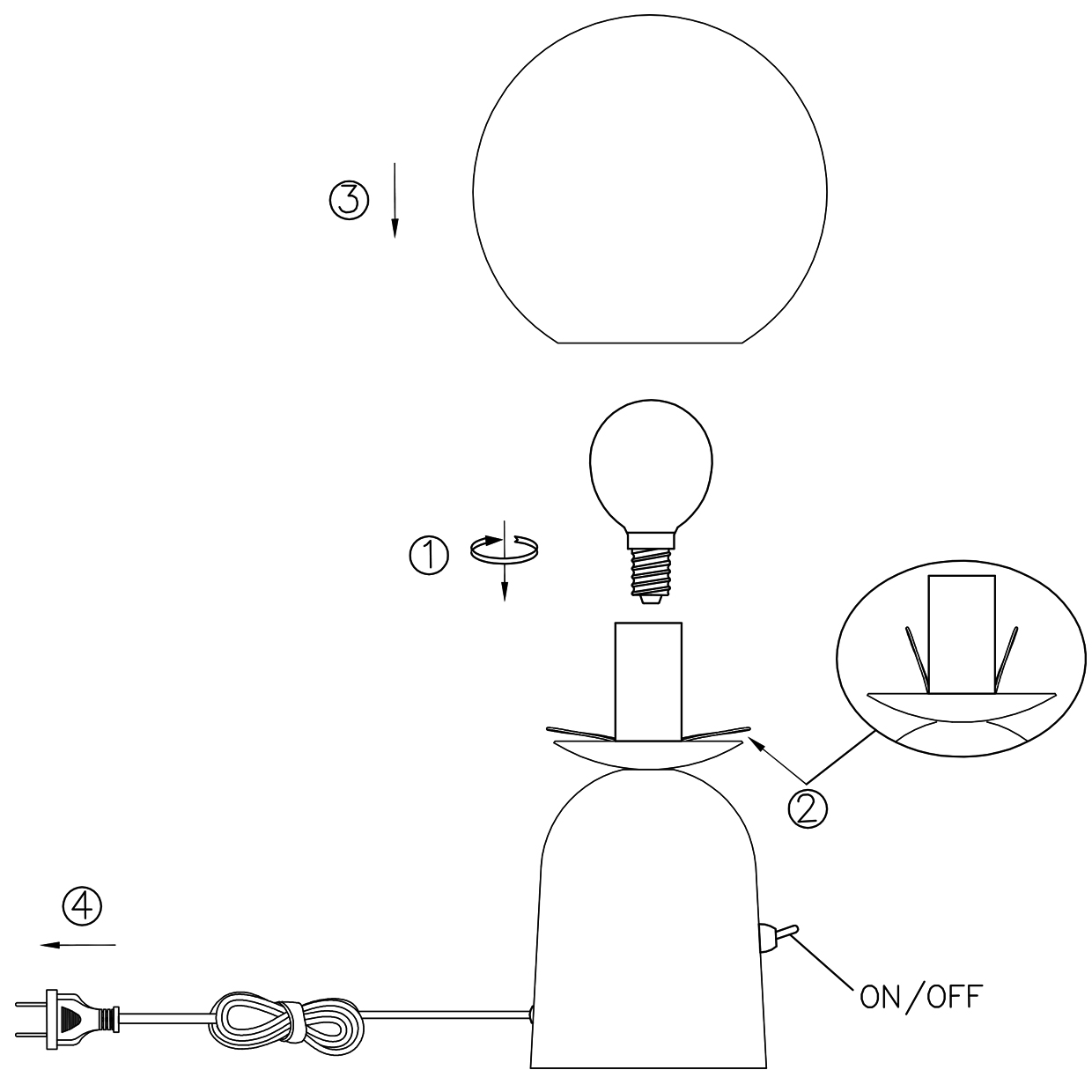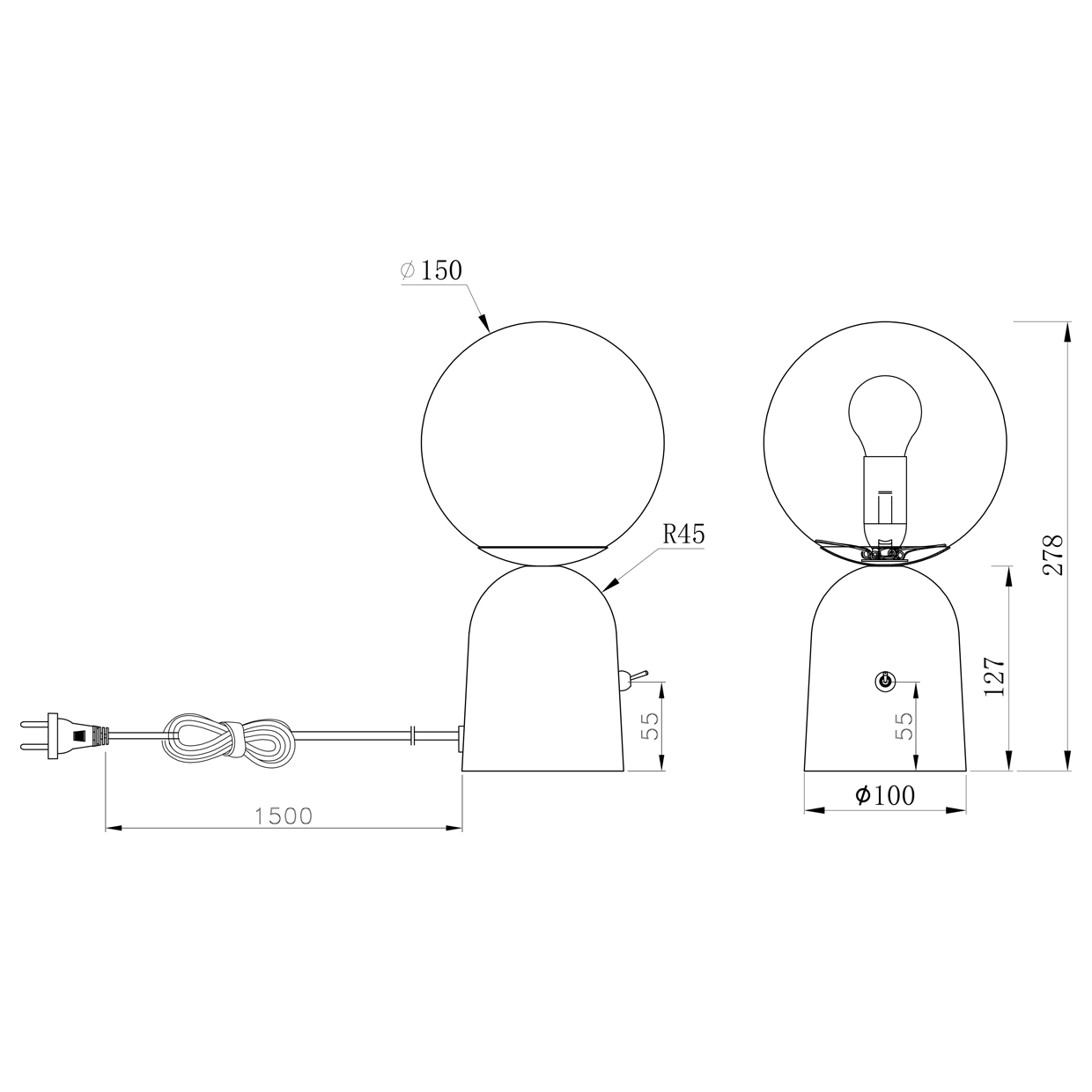 Base: Ø10cm x 13cmDiametro tulipa: Ø15cmCable negro 1,5mtros.Interruptor ON/OFF en la base.