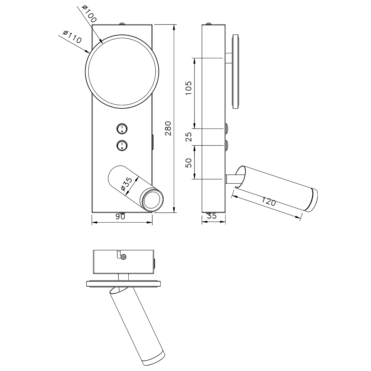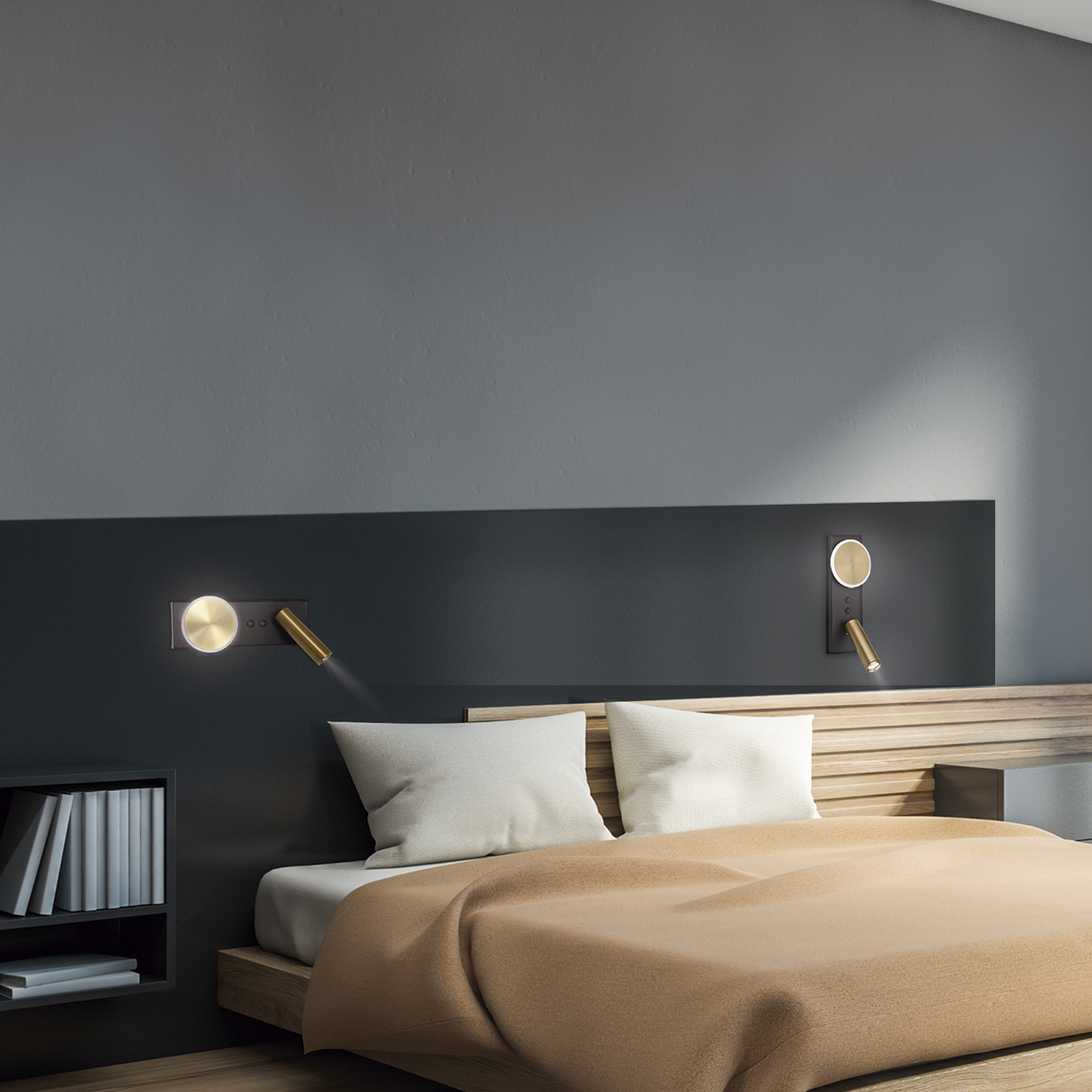 Aplique de la COLECCIÓN ARBUS en acabado Negro/Latón.Fabricado en metal.Potencia: 11WTemperatura de color: 3000KLuz LED circular Ø11 cmLector: orientable, tamaño 12 x 3,5 cmBase: 28 x 9 cmConexión USBDoble interruptor ON/OFF indep