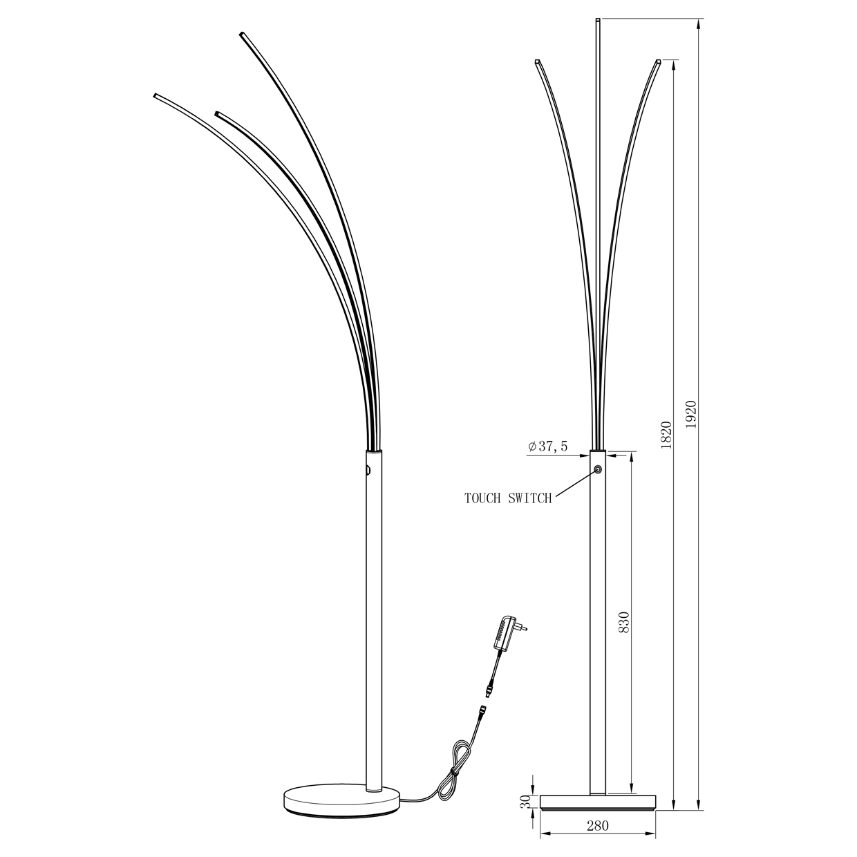 Lámpara de pie /Pie de salón la Colección Elaz (23W). Fabricado en metal con acabado en negro. Desde la base emergen tres barras de poco grosor en acabado níquel satinado con Led integrado (3x6W)18W 1000LM 4000K. Es una luminaria regulable en intensi