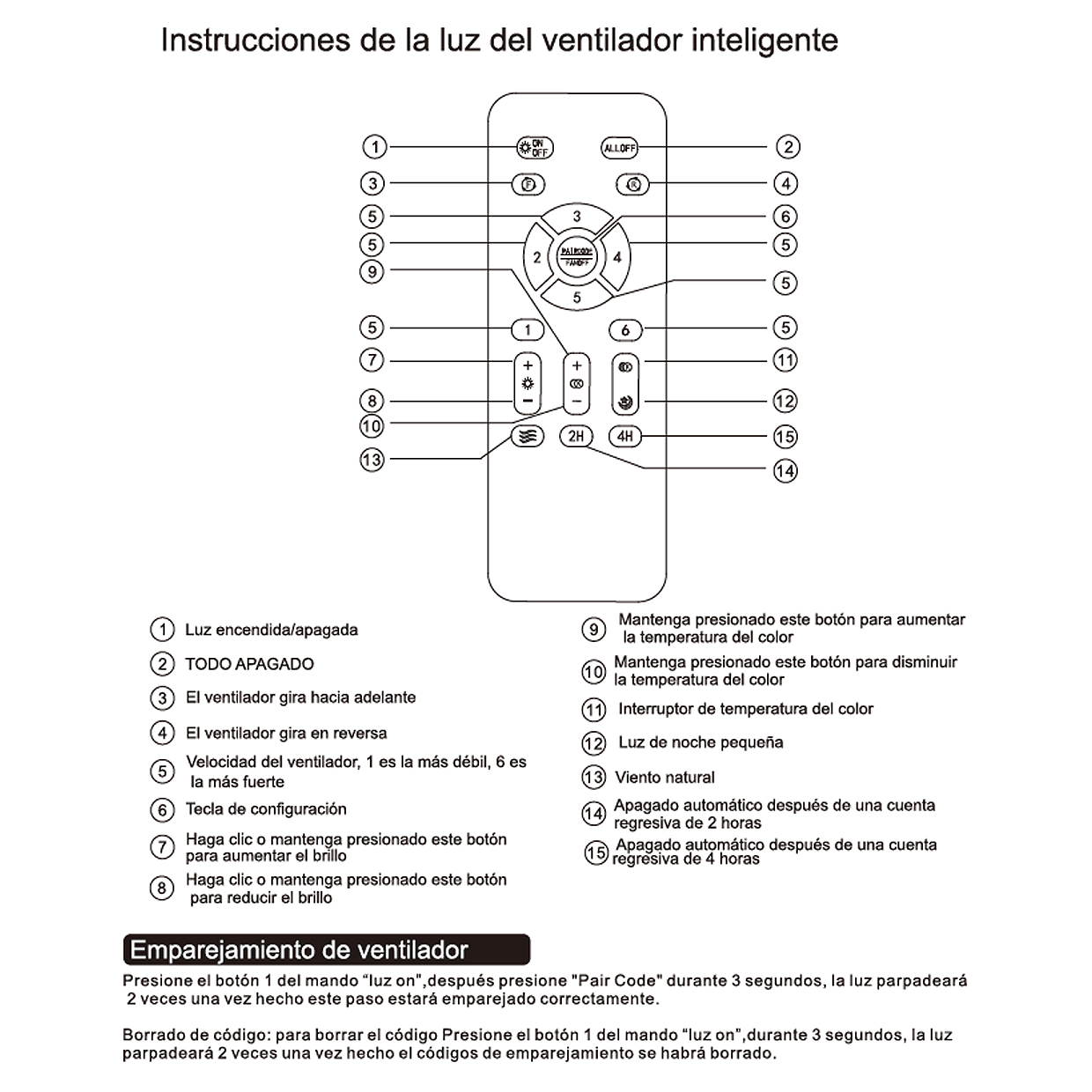 TOTAL 48WMOTOR DC 30WLUZ LED 18W 3000K,4000K,6500K3 PALAS ABSØ30CM PALAS CERRADASØ71CM PALAS ABIERTASMANDO A DISTANCIA (pilas no incluidas)DIMABLE6 VELOCIDADESMODO INVIERNOMODO VERANOMODO BRISATEMPORIZADOR MEMORIA