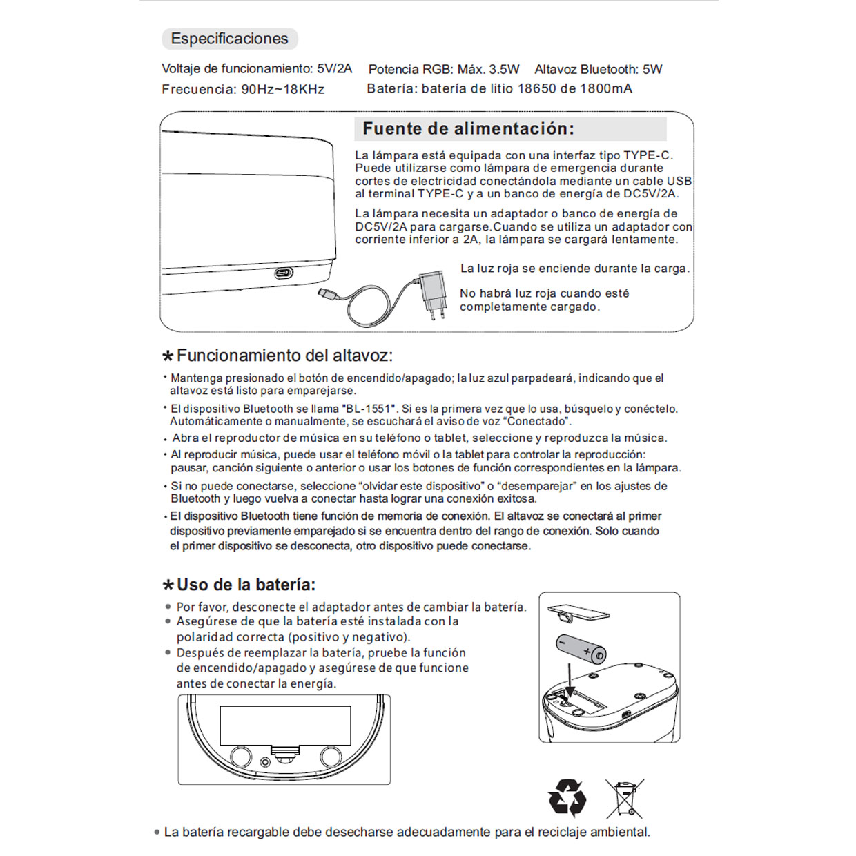SOBREMESA BOLT BLANCO RGB LED - BATERIA RECARGABLE.