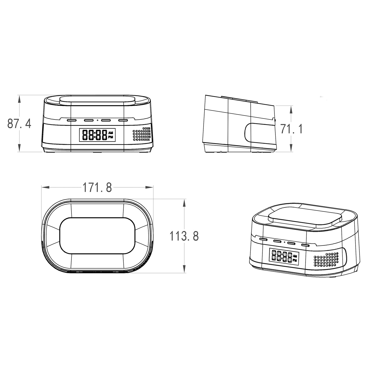 Lámpara de sobremesa LED y cargador inalámbrico de la Colección Bolt, fabricada en acrílico con acabado en negro.Un gadget versátil que combina iluminación, sonido y carga en un mismo diseño:- No dimable- Luz RGB de alta luminosidad- Cuat