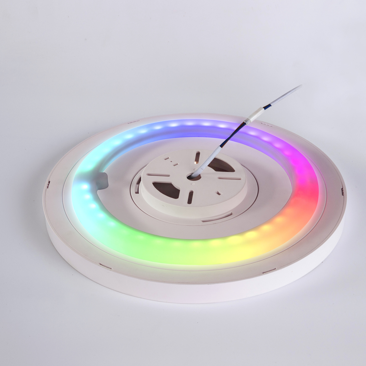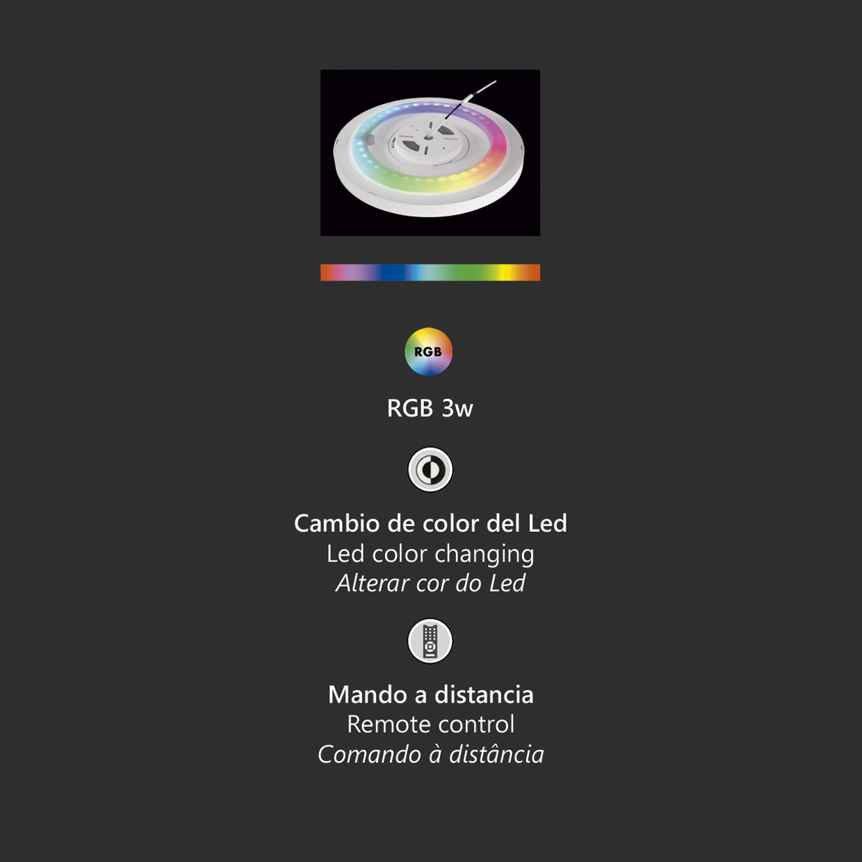 Plafón Led de la Colección TANZA (34W). Fabricado en metal en acabado blanco con difusor en metacrilato. Ilumina y decora tus espacios con estilo. Este plafón LED de 34W ofrece cambio de color de Led y función RGB (3w) para crear el ambiente perfecto