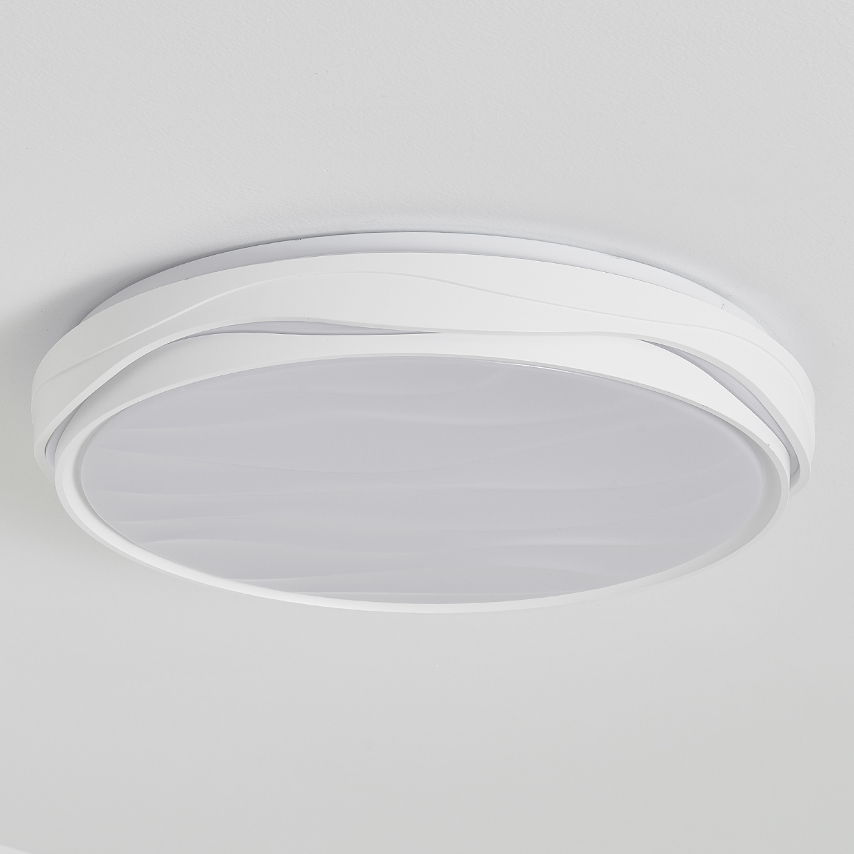 Plafón Led de la Colección Ocean (48W). Fabricado en metal en acabado blanco y metacrilato. Led integrado 48W 6476LM 3000-4000-6000K. Selector color de luz.Ideal para su ubicación en zonas de paso, entradas o corredores.Diametro Ø40cmx8cm