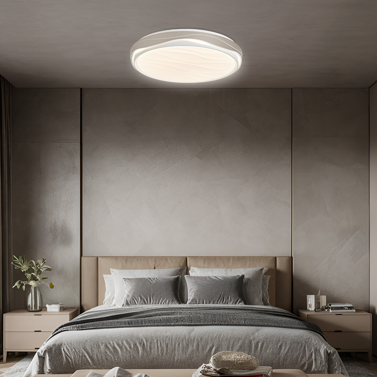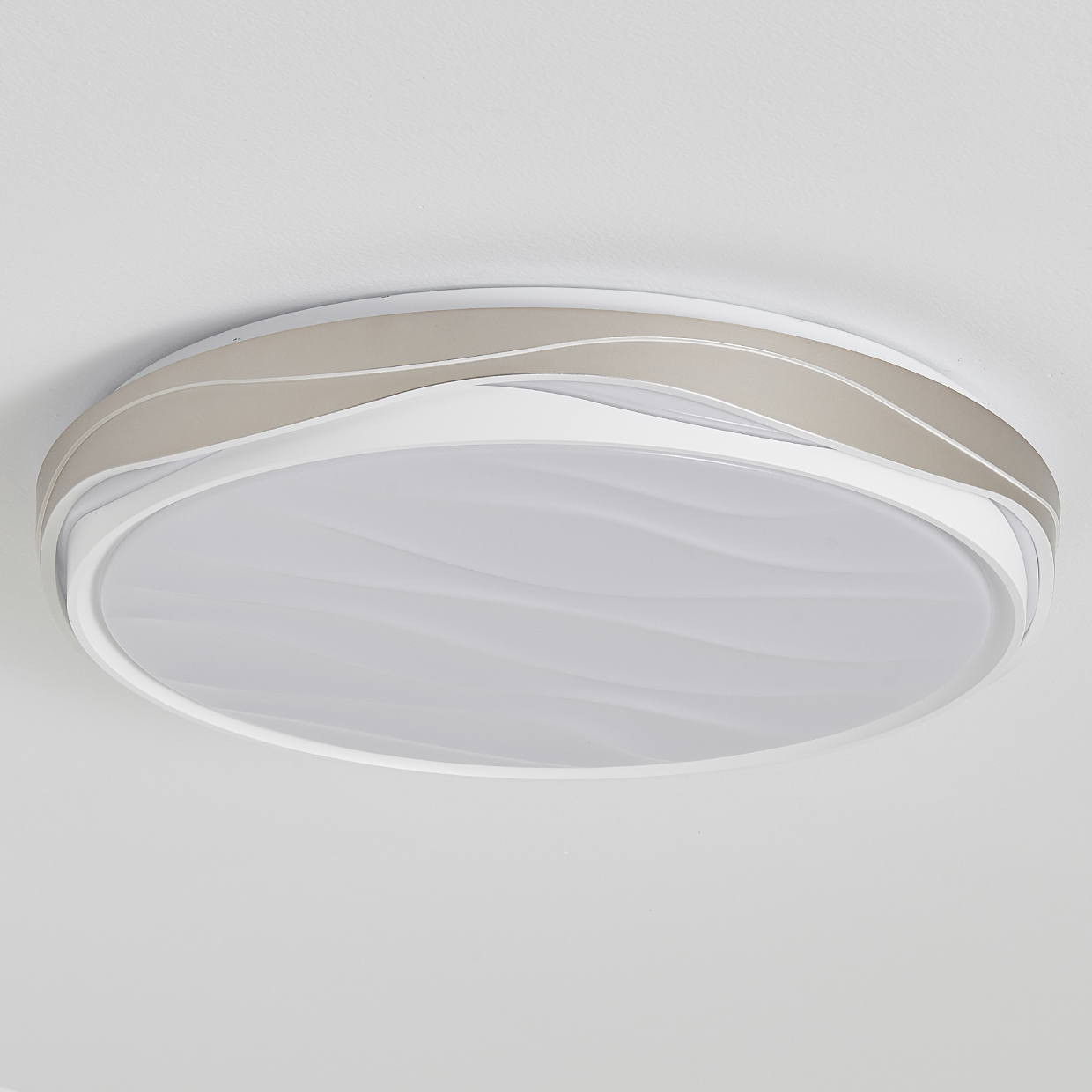 Plafón Led de la Colección Ocean (48W). Fabricado en metal en acabado blanco/champagne y metacrilato. Led integrado 48W 6476LM 3000-4000-6000K. Selector color de luz.Ideal para su ubicación en zonas de paso, entradas o corredores.Diamet