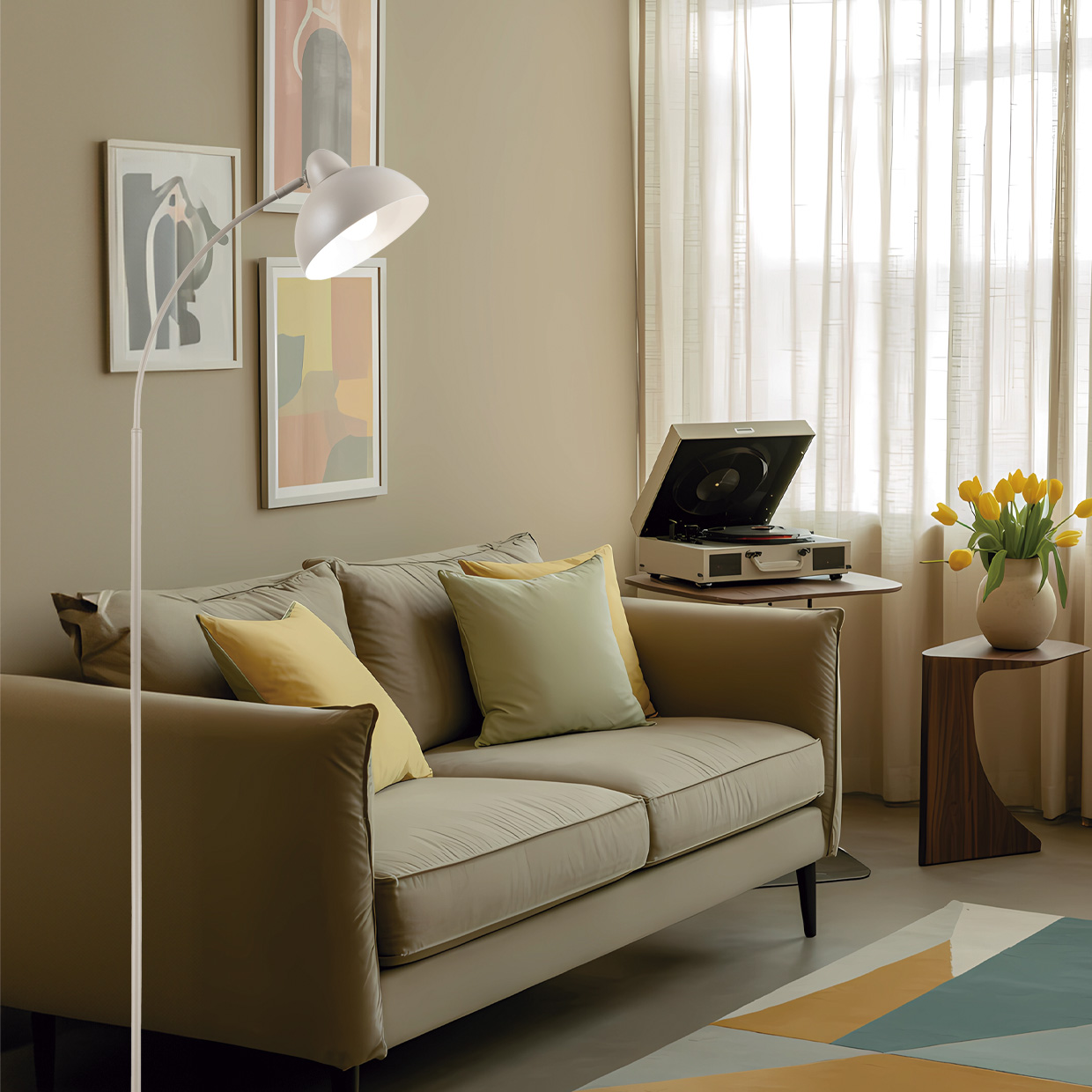 Pie de salón de la Colección NIU en acabado totalmente acabado en Arena, interior de la pantalla en blancoBase de 23cmUsa bombilla E-27 (no incluida), compatibles con bombillas LED.Cable 1,8m con interruptor ON/OFF.