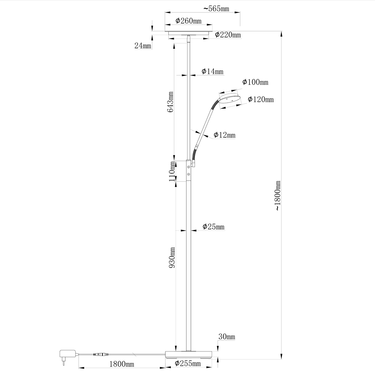 Pie de salón de la Colección DAYA, fabricado en metal y cristal, acabado madera/negro.Base de Ø22 cm.LED 25W + LED de lector 5W 4000K Dimable mediante doble interruptor ON/OFF en barra.Orientable.Cable 1,8m negro.