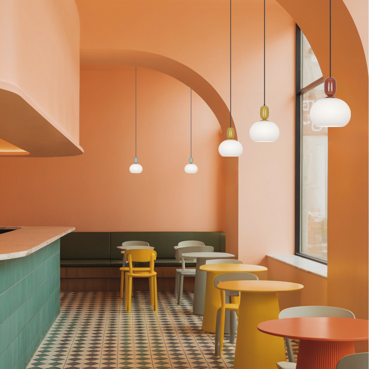 Colgante de la Colección MINT en acabado Verde y tulipa opal, fabricado en metal y cristal.Usa bombilla E-27 (no incluida) compatible con bombillas LED.Medida metal: 6x6x9cmMedida tulipa: 20x20x14cm