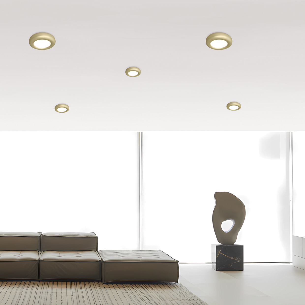 Plafón de la Colección ANSON en acabado Champagne fabricado en metal y acrílico.LED 12W 624LM 4000KNo tiene mando a distancia.