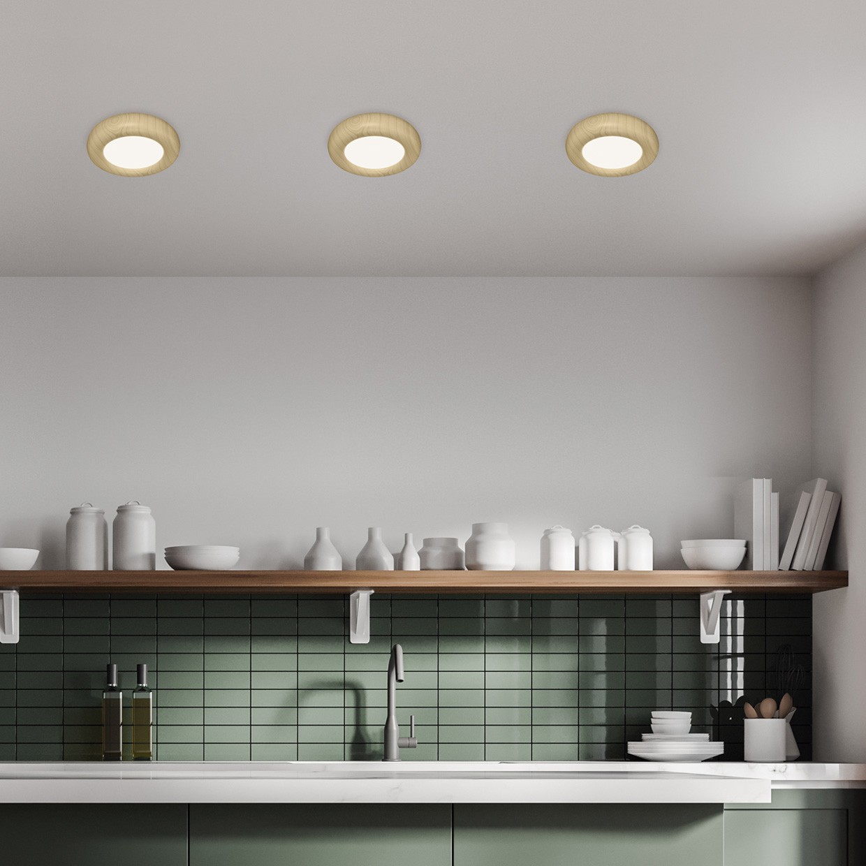 Plafón de la Colección ANSON en acabado Madera fabricado en metal y acrílico.LED 12W 624LM 4000KNo tiene mando a distancia.