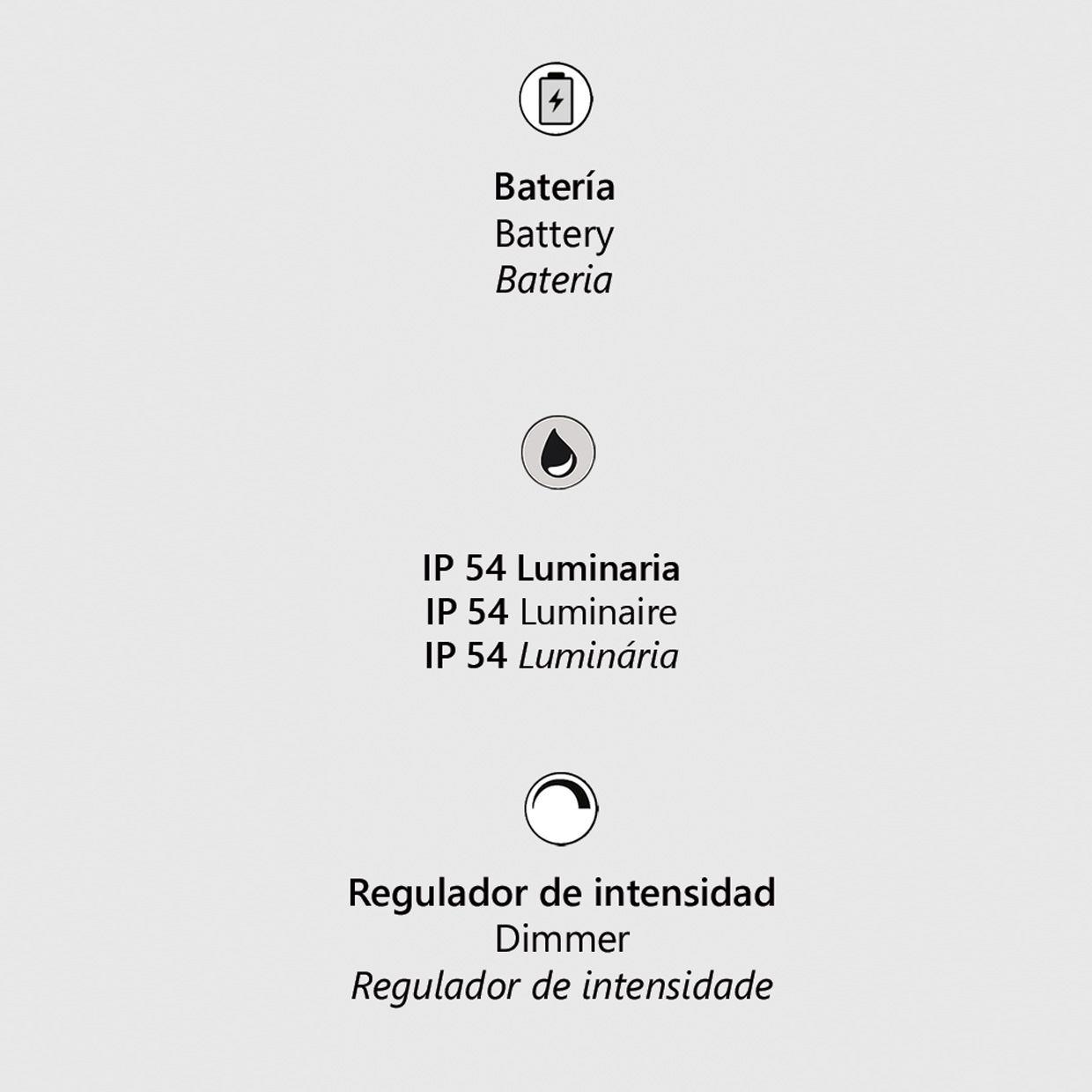 Sobremesa de la colección GABY en acabado Verde mate. Fabricado en acrílico. Gancho en la parte superior para colgar. LED 2W, con regulador de intensidad.Temperatura de color: 3000KBatería de litio recargable integrada de 1200 mAh. Carg