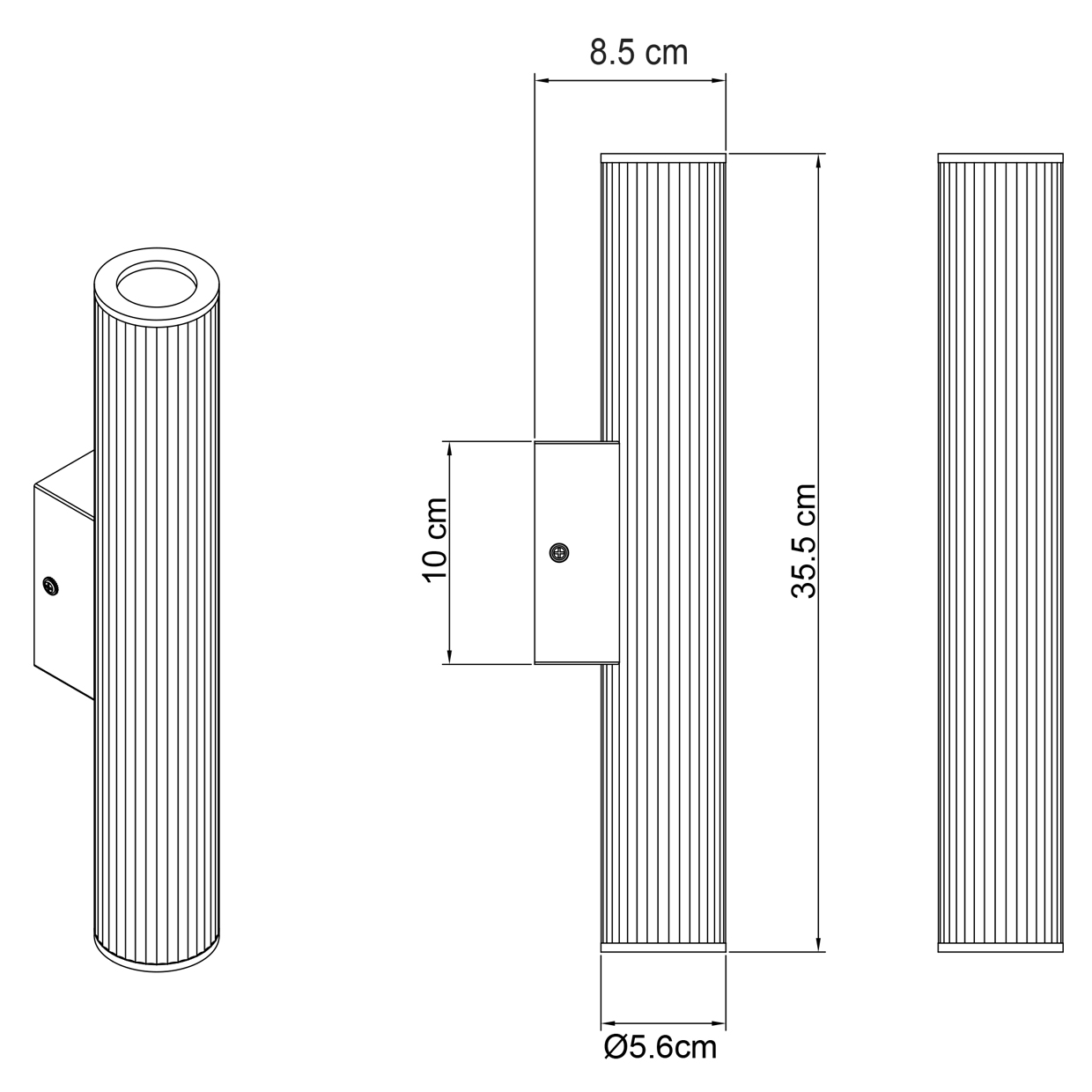 Aplique de exterior de la Colección ARBUS. Fabricado en metal de color negro, su diseño proyecta luz hacia arriba y hacia abajo.IP54, perfecto para su uso en fachadas, porches y patios. Usa dos bombillas GU-10, 50W Max. (no incluidas).