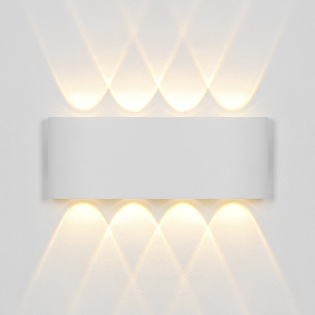 Aplique exterior de la Colección KING, fabricado en metal de color blanco, proyecta la luz hacia arriba y abajo.LED de 8W Protección IP54, preparada para exteriores.Temperatura de 3000K