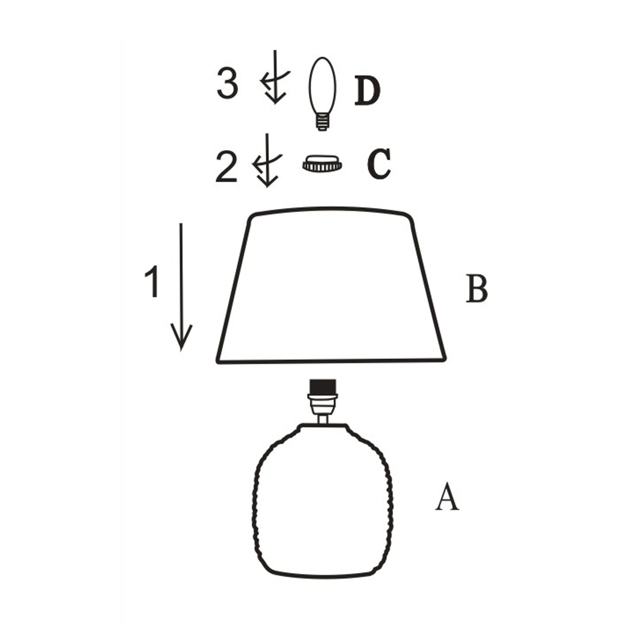 Sobremesa de la Colección LAZIO en acabado ceramica Arena, con pantalla de tela cónica de Ø28 cm.1 x E-27 / 60W (no incluida), compatible con bombillas LED.Cable PVC con interruptor ON/OFF.