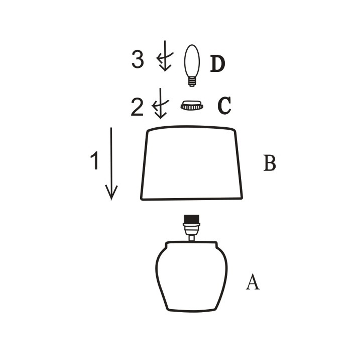 Sobremesa de la Colección BOGETTA en acabado ceramica Blanca, con pantalla de tela de Ø30 cm.1 x E-27 / 60W (no incluida), compatible con bombillas LED.Cable PVC con interruptor ON/OFF.
