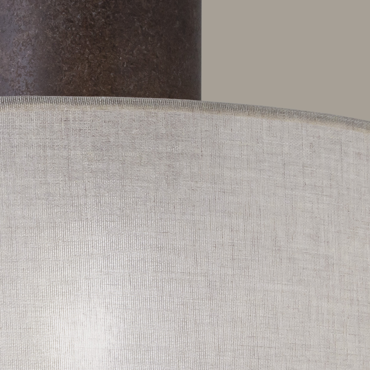 Colgante de la COLECCIÓN BRANDY, de fabricación propia.Fabricado con especial cuidado en los detalles, combinando metal negro y doble pantalla en acabado Lino vison y óxido.Pantallas:Pantalla grande: 40 cm (acabado lino visón)Pantalla p