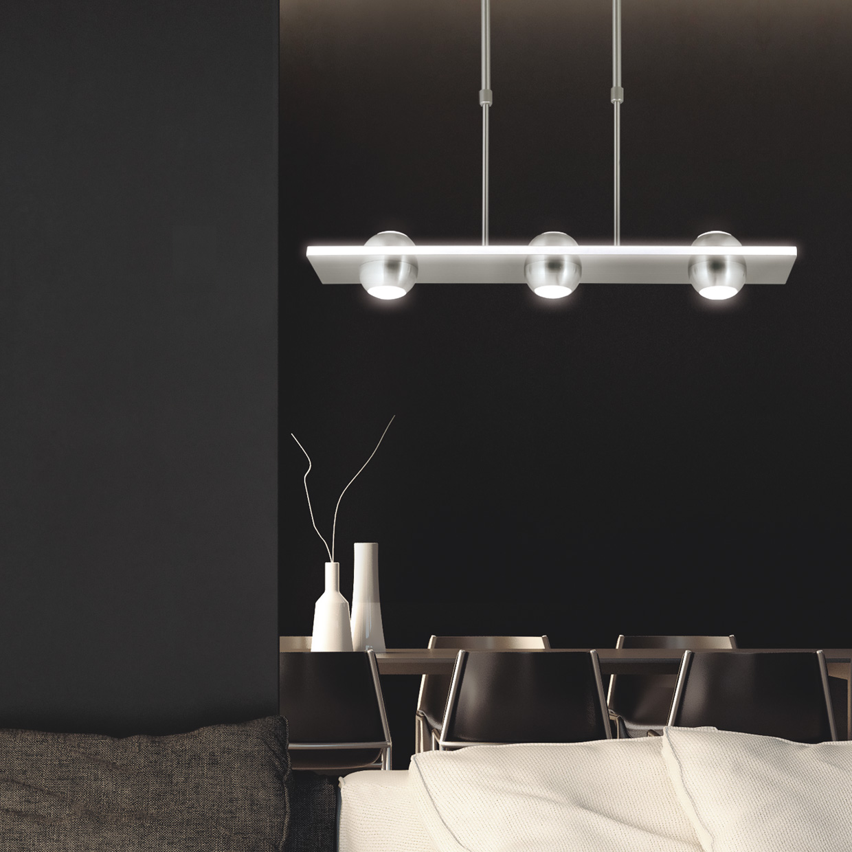 Lámpara/Barra Led de 3 luces de la Colección Fanton (36W). Fabricado en metal con acabado en níquel satinado y metacrilato. Led integrado LED 36W 3420LM 4000KUn atractivo diseño con led integrado, que nos ofrece una agradable iluminación de forma h